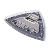 Просторный атриум нижних этажей объединяет торговую галерею, кафе и рестораны, а подземное сообщение с ТРЦ «Афимолл» позволяет пользоваться всей инфраструктурой комплекса, не покидая здания.